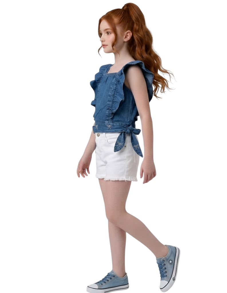 .بلوزة بناتي جينز بتصميم عصري جذاب، مثالية لإطلالة كاجوال شيك