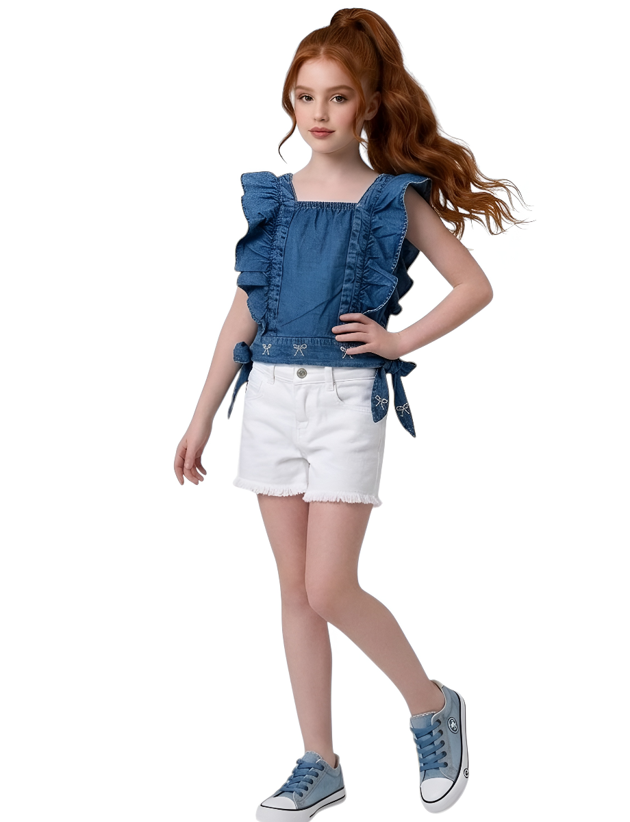 بلوزة جينز بناتي بتصميم أنيق
