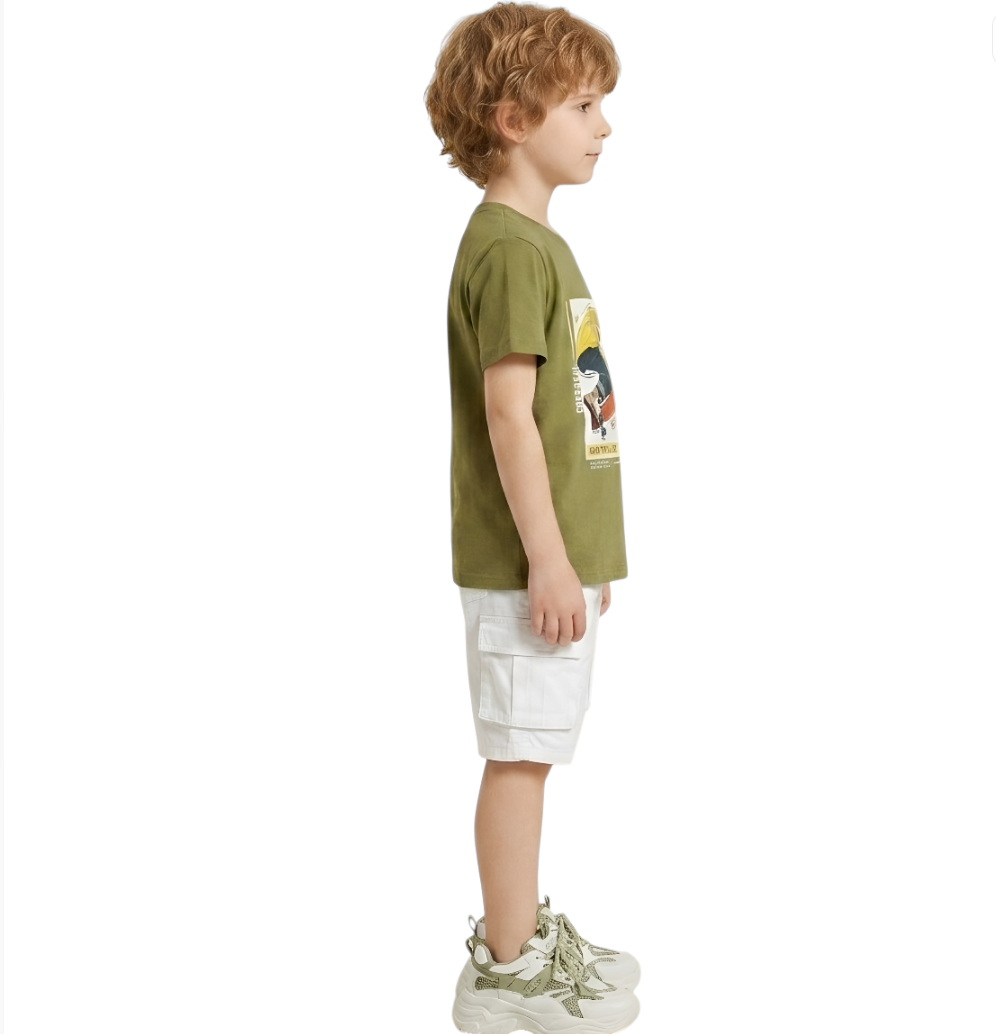 تيشيرت قطن للأولاد بطبعة مميزة في المنتصف، تصميم عملي ومثالي، تصميم مريح للاستخدام اليومي