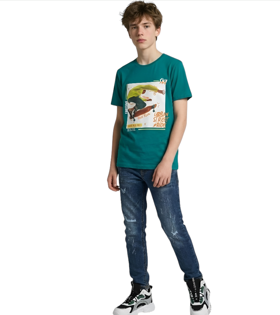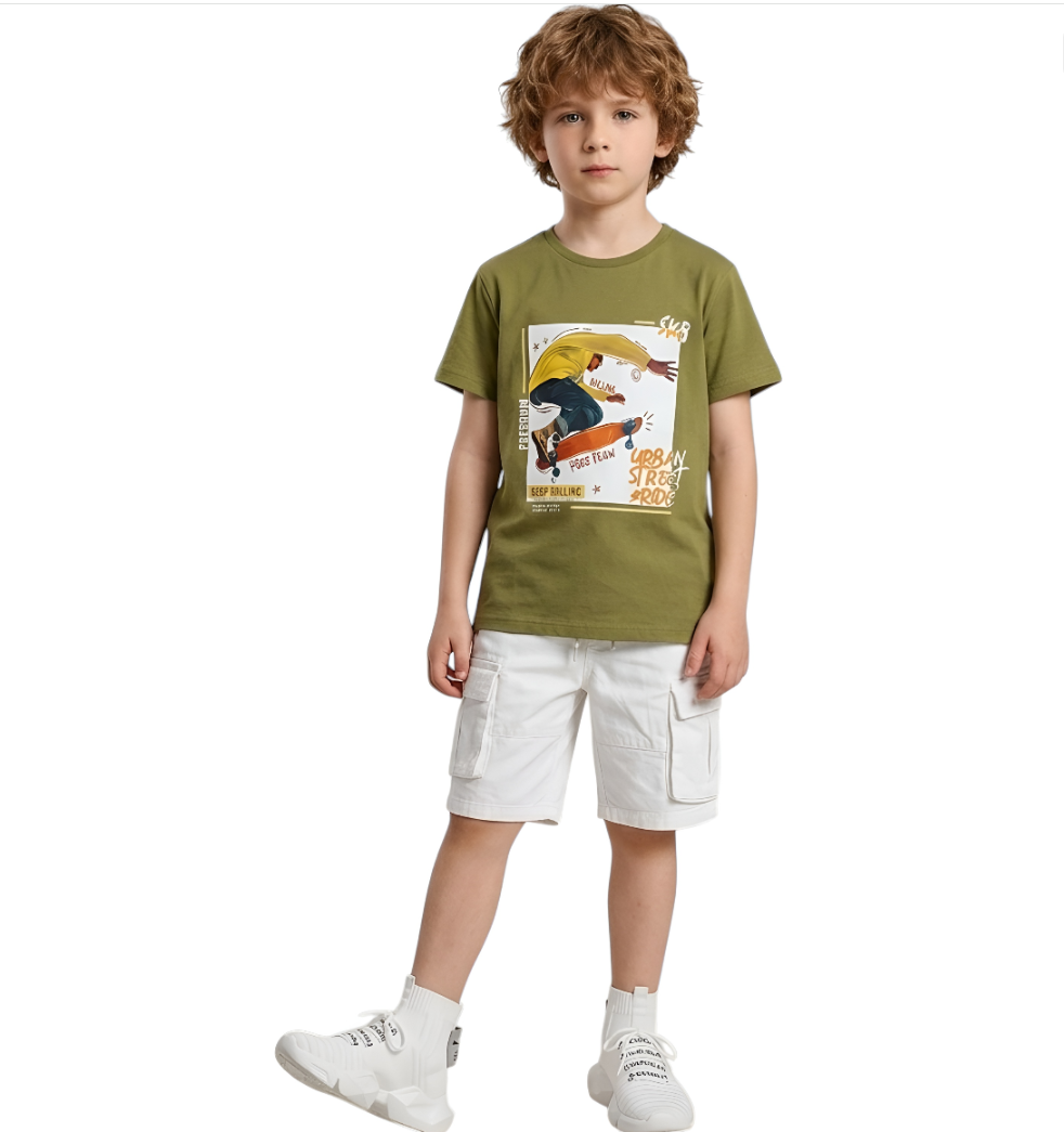 تي شيرت قطن بطبعة تزحلق للأولاد