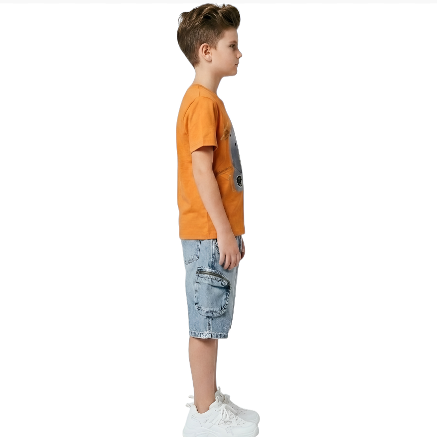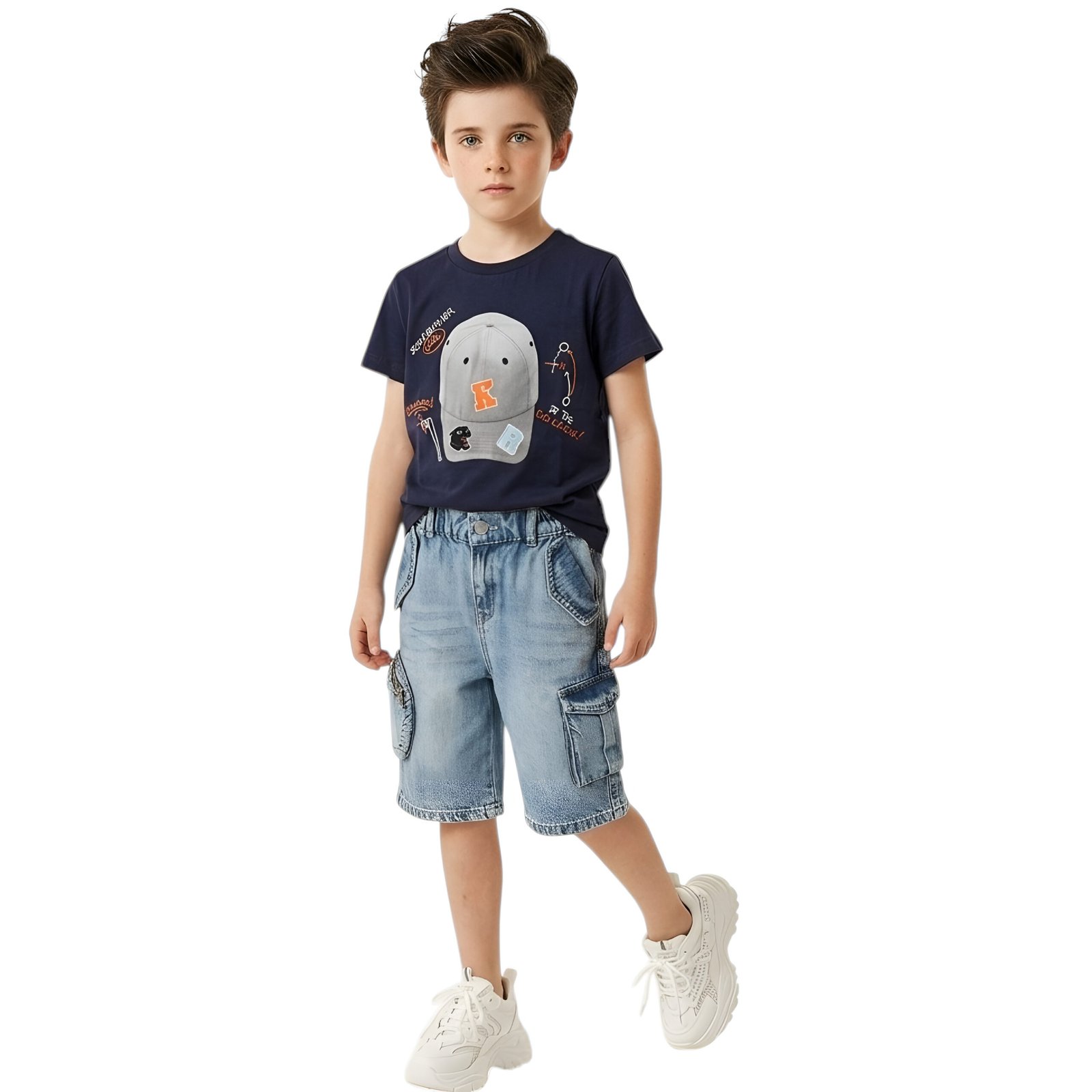 تي شيرت قطن للأولاد بطبعة كاب مميز في المنتصف، تصميم عملي ومثالي، تصميم مريح للاستخدام اليومي.